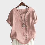 Ova bluza donosi savršen balans između ležernosti i elegancije. Asimetrični raspored gumba daje joj moderan i poseban izgled, dok lagani materijal osigurava prozračnost i udobnost tijekom cijelog dana. Idealna je za svakodnevne kombinacije, ali i za posebne prilike kada želite izgledati drugačije i sofisticirano.