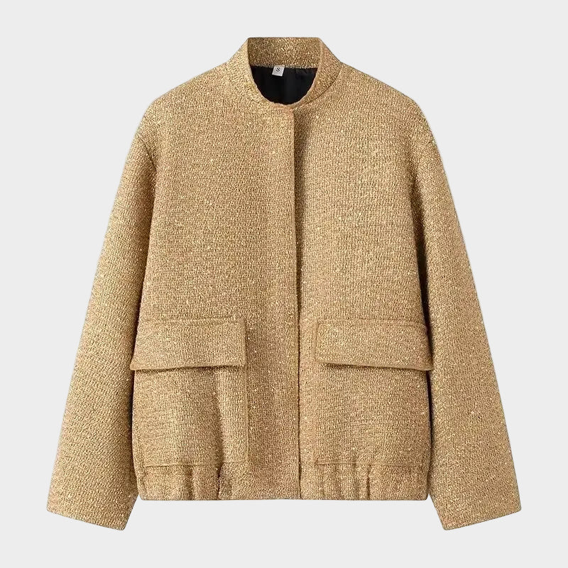 Blejzer Clara Sjajni zlatni ton s dugim rukavima i stilom street chic za upečatljiv izgled