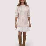 Ova pletena haljina spaja toplinu i stil. Savršena za hladnije dane, a dovoljno moderna da se nosi u svakoj prilici.