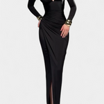 Elegantna i bezvremenska, haljina Jelena dizajnirana je kako bi istaknula figuru s savršenim balansiranjem između sofisticiranosti i svestranosti. Njezin duboki V izrez stvara ženstvenu i vitku siluetu, dok delikatno plisiranje dodaje suptilan pokret i rafinirani izgled. Dugi rukavi čine je idealnom odjećom za svježe sezone ili formalne prilike gdje želite istaknuti s elegancijom.