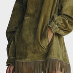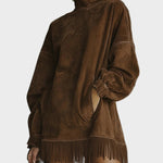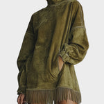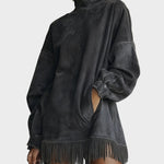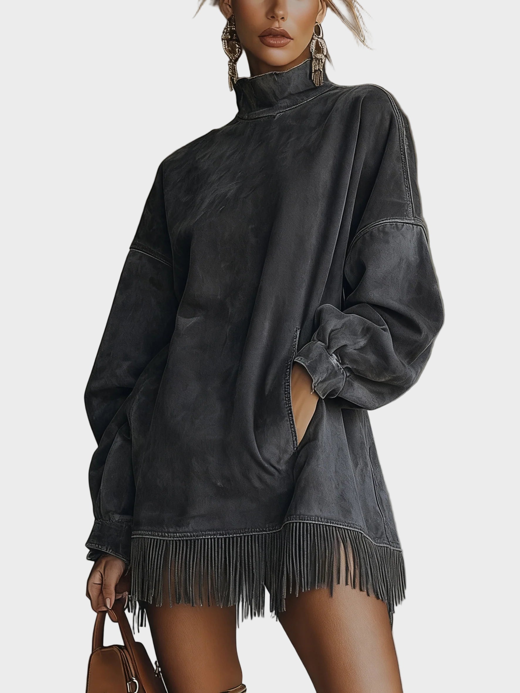 Profinjeni stil koji kombinira udobnost i osobnost, dizajniran za ženu koja voli osjećati se elegantno, a opet slobodno u kretanju. Detalj s resama dodaje razigran i ženstven dodir, savršen za svaku prigodu - od ležernih večeri do šik događanja.