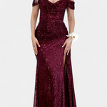 Očaravajuća silueta stvorena da zablista u nezaboravnim noćima. Renata kombinira drapirani dekolte bez naramenica s naboranim korzetom koji ističe figuru, dok visoki prorez na bedru dodaje hrabrost. Njen sirena kroj s laganim repom unosi dramatičnost i eleganciju, čineći je savršenim komadom za gala događaje i formalne proslave.