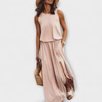 Otvorite vrata eleganciji i lakoći s bezrukavnom haljinom dizajniranom za moderne žene. Prozračan materijal nježno prati liniju tijela, dok opušteni kroj i okrugli izrez daju profinjenu jednostavnost koja laskavo pristaje svakoj figuri. Idealna je za tople dane, šetnje, druženja ili putovanja – haljina koja vas neće iznevjeriti.
