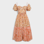 Haljina savršena za one koji traže romantičan dodir s inspiracijom iz prirode. Valentina obavija vašu siluetu snova s dekolteom u obliku srca, pufastim rukavima i lepršavom suknjom koja se ističe svojim prirodnim pokretom i cvjetnim uzorkom u nijansama breskve.