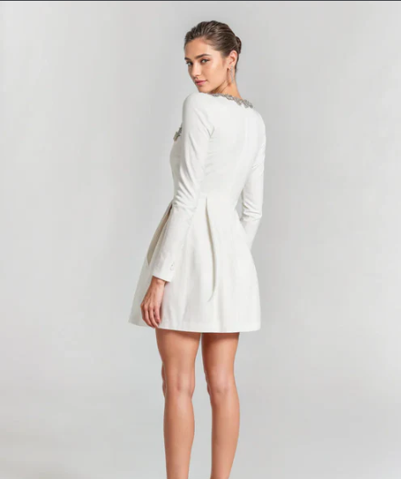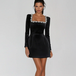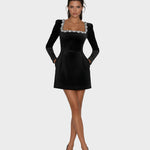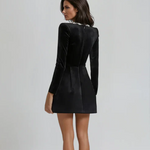 Njezin plemeniti baršun, izrez ukrašen suptilnim sjajem i besprijekoran kroj stvaraju siluetu samopouzdanja i ženstvenosti. 💫