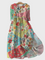 Ova impresivna duga haljina ističe se svojim razigranim patchwork uzorkom u živopisnim bojama, koje kombiniraju ružičastu, zelenu, plavu i žutu. Njezina jedinstvena cvjetna i točkasta šablona daje retro dojam i posebnu privlačnost, dok pojas u struku elegantno naglašava siluetu.