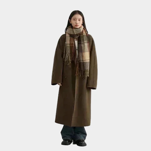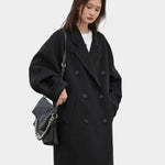 Elegantni dvostruki vuneni kaput s prednjom kopčom i sofisticiranim padajem od Teresa
