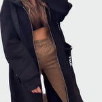 Dugi kaput s kapuljačom koji kombinira eleganciju i praktičnost. Njegovo udobno pristajanje čini ga idealnim za svakodnevnu upotrebu, dok njegov bezvremenski dizajn dodaje stil svakoj odjevnoj kombinaciji. Komad koji pruža toplinu i sofisticiranost tijekom hladnih dana.
