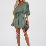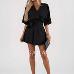 ✨ Ženstveni dizajn na preklop: V-izrez nježno naglašava dekolte, dok preklopljena silueta ističe vašu prirodnu ljepotu.