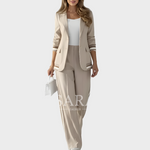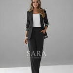 Laskav kroj – široke nogavice vizualno izdužuju, a sako lijepo oblikuje liniju.