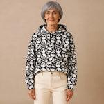 Ova pletenina ne grebe i ne iritira kožu zahvaljujući mekanoj, prozračnoj mješavini koja prija koži. Grije vas bez pregrijavanja, idealno za promjenjivo jesensko vrijeme. Materijal zadržava oblik – bez rastezanja ili opuštanja nakon nekoliko nošenja. Šareni, skandinavski nadahnuti uzorak dodaje razigran, a ipak moderan dodir svakom outfitu. Uparite ga s trapericama ili kratkim hlačama za ležeran look, ili ga podignite uz suknju i čizme. Kapuljača pruža dodatnu toplinu i opuštenu atmosferu.