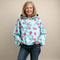 Ova pletenina ne grebe i ne iritira kožu zahvaljujući mekanoj, prozračnoj mješavini koja prija koži. Grije vas bez pregrijavanja, idealno za promjenjivo jesensko vrijeme. Materijal zadržava oblik – bez rastezanja ili opuštanja nakon nekoliko nošenja. Šareni, skandinavski nadahnuti uzorak dodaje razigran, a ipak moderan dodir svakom outfitu. Uparite ga s trapericama ili kratkim hlačama za ležeran look, ili ga podignite uz suknju i čizme. Kapuljača pruža dodatnu toplinu i opuštenu atmosferu.