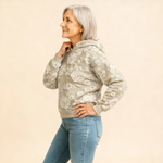 Ova pletenina ne grebe i ne iritira kožu zahvaljujući mekanoj, prozračnoj mješavini koja prija koži. Grije vas bez pregrijavanja, idealno za promjenjivo jesensko vrijeme. Materijal zadržava oblik – bez rastezanja ili opuštanja nakon nekoliko nošenja. Šareni, skandinavski nadahnuti uzorak dodaje razigran, a ipak moderan dodir svakom outfitu. Uparite ga s trapericama ili kratkim hlačama za ležeran look, ili ga podignite uz suknju i čizme. Kapuljača pruža dodatnu toplinu i opuštenu atmosferu.