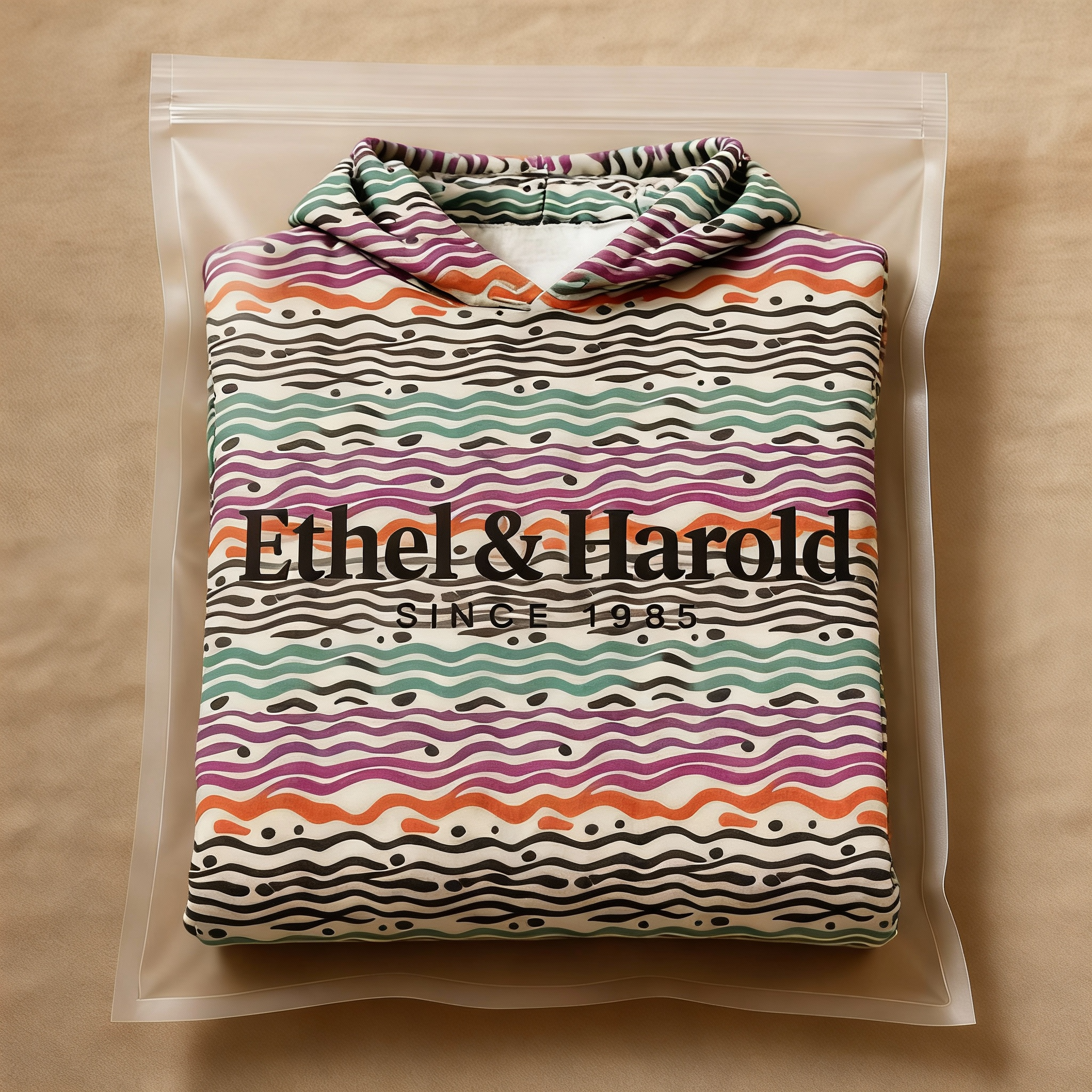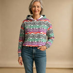 Dizajn: Okrugli izrez s kapuljačom, šareni žakardni uzorak na prsima i rukavima