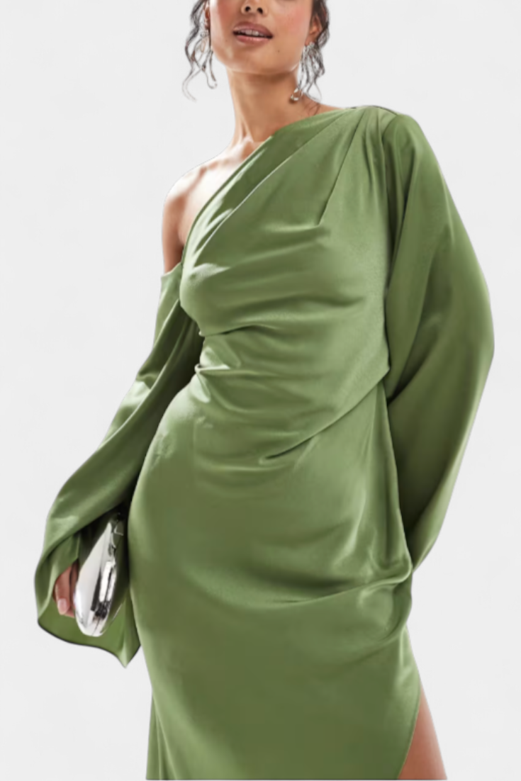 Franka Asimetrična Maxi Haljina s Jednim Rame i Oblikovanom Strukom