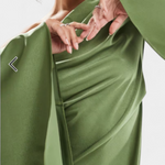 Impresivna i sofisticirana, haljina Franka kombinira dizajn s jednim ramenom s fluidnom siluetom koja uravnotežuje dramatičnost i eleganciju. Njen asimetrični dekolte stilizirano uokviruje figuru, dok oblikovani struk naglašava siluetu, a fluidni rub donosi prirodan pokret. Komad osmišljen za isticanje s klasom u svakoj posebnoj prilici.