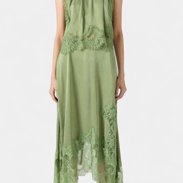 Martina Duga Haljina s Halter Izrezom i Prozirnim Čipkastim Strukom