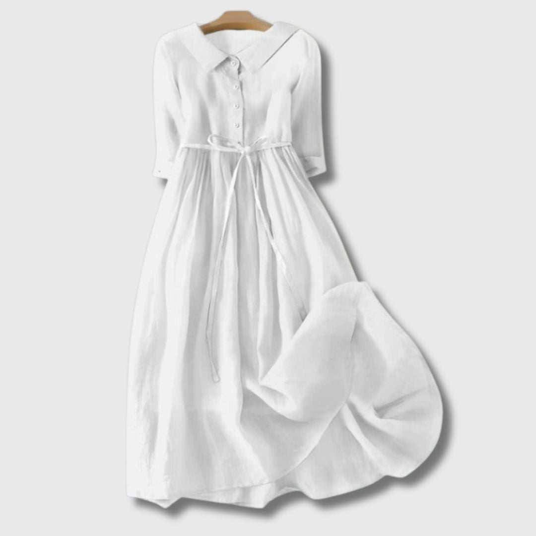 Doro haljina izrađena je za žene koje žele izgledati sofisticirano, a osjećati se ugodno tijekom cijelog dana. Kratki rukavi i lagan materijal pružaju slobodu pokreta, dok vezica u struku naglašava liniju tijela i stvara elegantan oblik. Ova haljina savršena je za poslovne prilike, obiteljska okupljanja ili večernje izlaske.