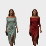 Haljina izrađena za žene koje cijene profinjenu jednostavnost, potporu u kroju i siluetu koja laskavo pristaje bez traženja pozornosti. Njezin srednje težak rastezljivi pletivo osigurava udobnost, dok dostojanstven pad materijala pruža samopouzdanje za ručkove, praznike, crkvena okupljanja ili bilo koju priliku koja zahtijeva nenametljivu eleganciju.