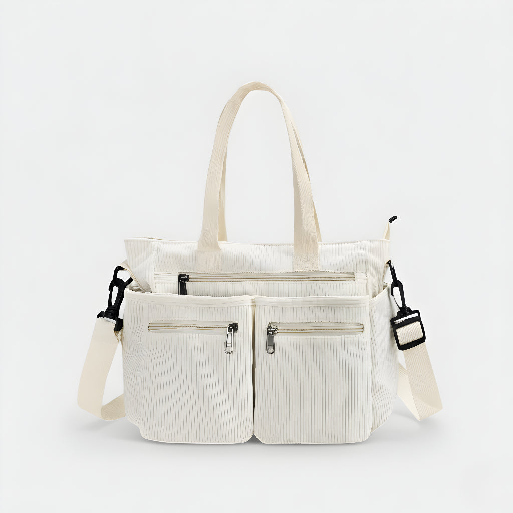 Upotpunite svoj svakodnevni izgled s Urban Cord Tote torbom. Ova moderna torba kombinira stil i funkcionalnost te je savršena za vaš užurban život. Bilo da idete na posao, u školu ili u šetnju, ova torba ima dovoljno prostora za sve vaše bitne stvari i dodaje dašak stila vašem izgledu.