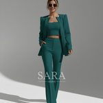 Ovaj sofisticirani set uključuje moderni blazer, elegantnu bluzu i udobne hlače – idealno za suočavanje s danom sa stilom. Bilo da se radi o uredu ili opuštenoj večeri, set Selina spaja maksimalnu udobnost s jedinstvenim stilom.