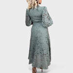 Elegantna i suptilna dizajn – rukavi u obliku lampiona i čipka daju haljini lagan i rafiniran izgled.