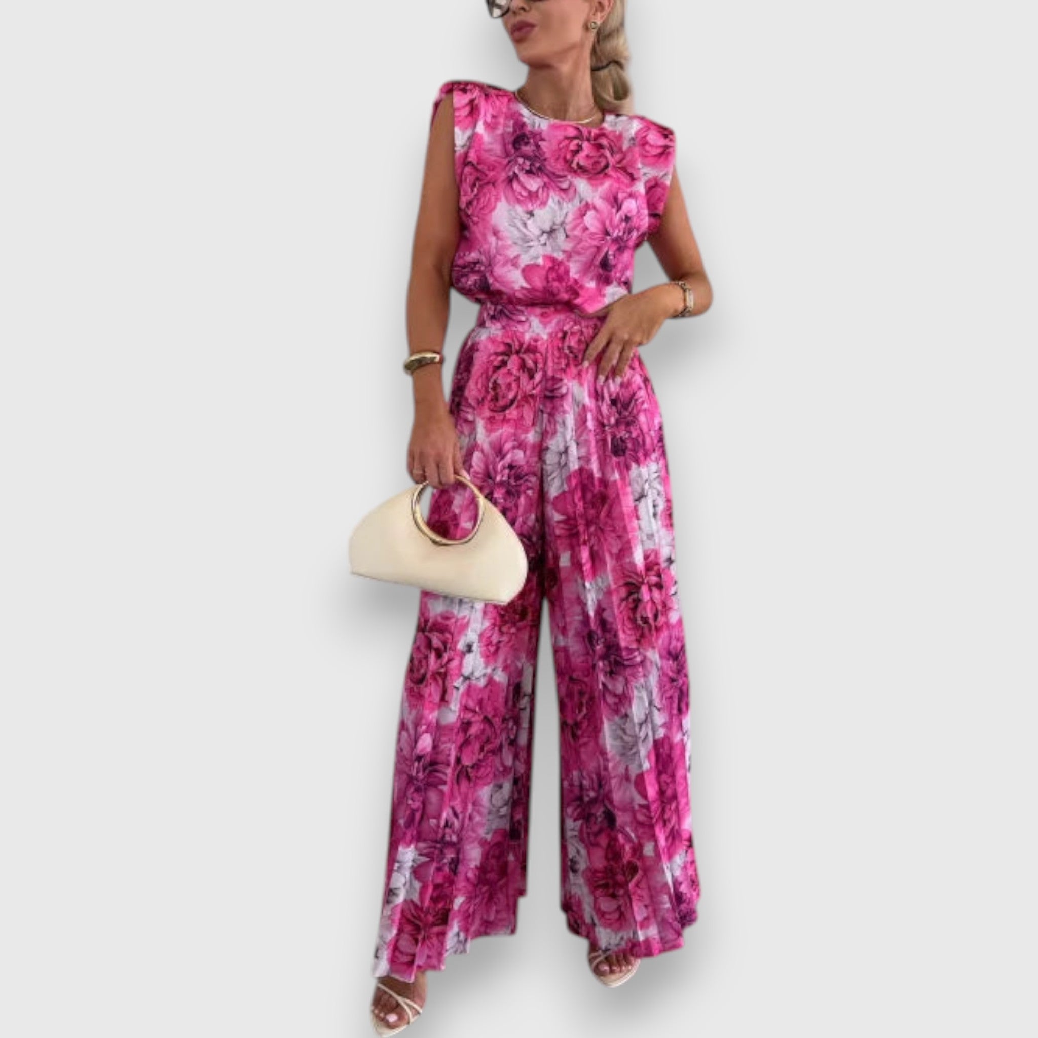 Ensemble Manja očarava svojom fluidnom elegancijom i modernim stilom – savršeno za posebne prigode, elegantne večere ili stilizirani svakodnevni izgled. Ženska kroja i plisirani hlače nježno padaju, pružajući laskavu siluetu uz maksimalnu udobnost nošenja.
