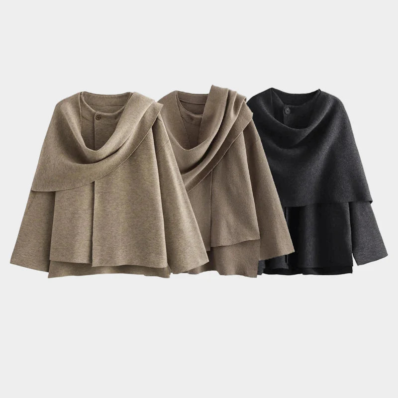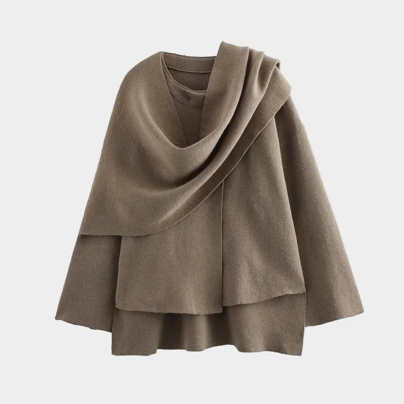 Elegantni puffer kaput Elena s asimetričnom šalom i suvremenim krojem