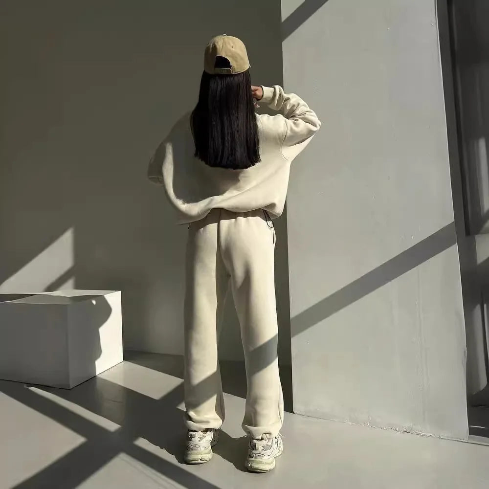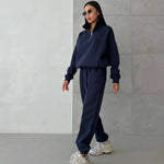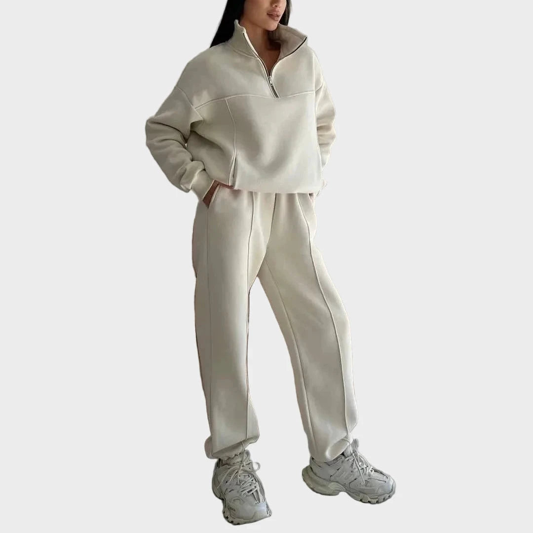 Ovaj elegantni set odjeće za opuštanje s ovratnikom na patentni zatvarač kombinira ležeran izgled s savršenim krojem. Dovoljno udoban za dom, dovoljno moderan za ulice. Senna nudi savršenu ravnotežu između sportskog i opuštenog. Zahvaljujući mekoj tkanini i praktičnom zatvaraču, ostat ćete udobni i elegantni cijeli dan.
