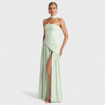 Savršena haljina za privlačenje pogleda i osvajanje na svakom koraku. Njen bezrameni dekolte i bočni prorez kombiniraju senzualnost i sofisticiranost, idealna za događaje gdje je ona glavna.