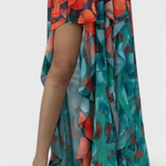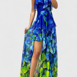 Skulpturalna prisutnost s romantičnim dodirom. Haljina Zrinka kombinira mekane slojeve volana s bočnim otvorom i suptilnim gradijentom boje, stvarajući dizajn koji elegantno teče i ističe se bez napora. Njezina struktura bez rukava i kroj do gležnjeva čine je idealnom opcijom za ljetne događaje ispunjene stilom.